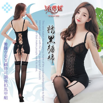 迷夢之情 .蕾絲深V吊襪帶連身馬甲三件式組