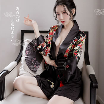 如花美眷.性感和服外袍+宮廷肚兜套裝三件組