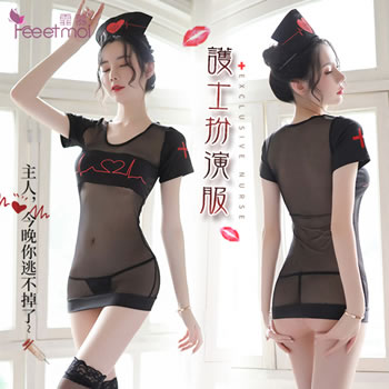 護士角色扮演網衣!鏤空蕾絲短裙五件式套裝