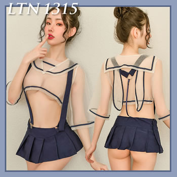 《FEE ET MOI》學生角色扮演服!後背裸肌透紗拼接襯衫百摺短裙四件式套裝