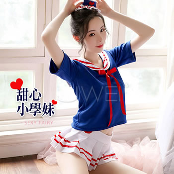 甜心小學妹.齊臀百褶日系水手服套裝五件組